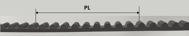 larghezza del dente; la particolarità di questa cinghia è che è perfettamente speculare, nel senso che piegando la